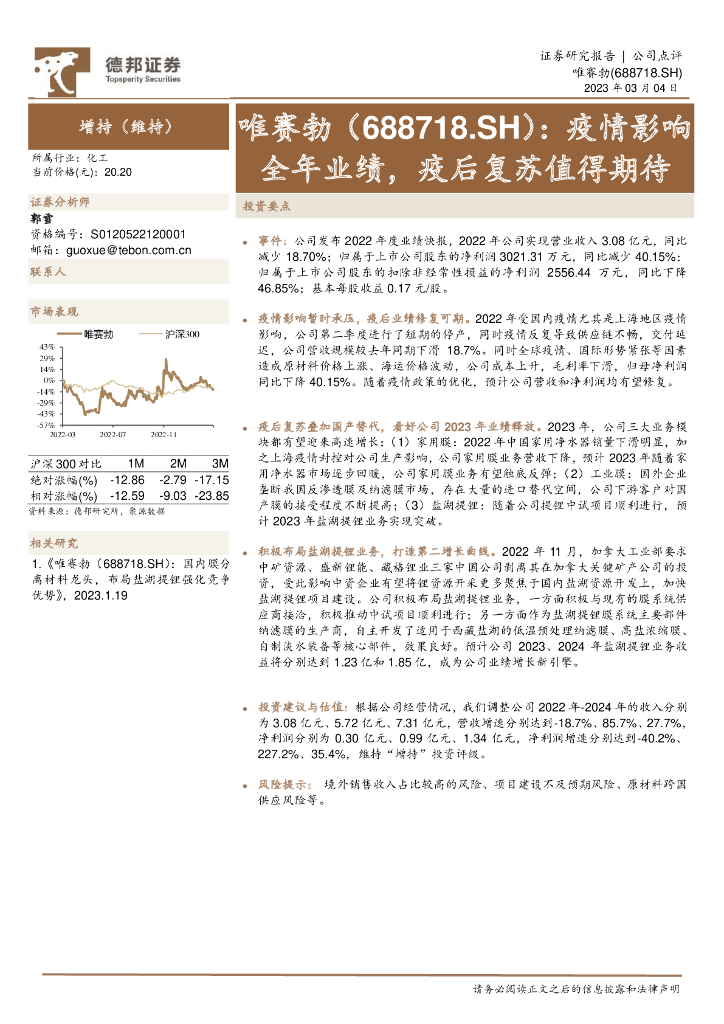 德邦证券:唯赛勃(688718)-疫情影响全年业绩,疫后复苏值得期待.pdf