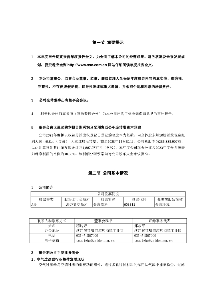 603311-金海高科:金海高科2023年年度报告摘要.pdf