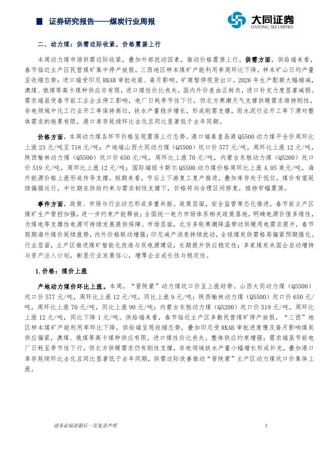大同证券:煤炭行业周报:供需格局优化,动力煤价稳中有升.pdf