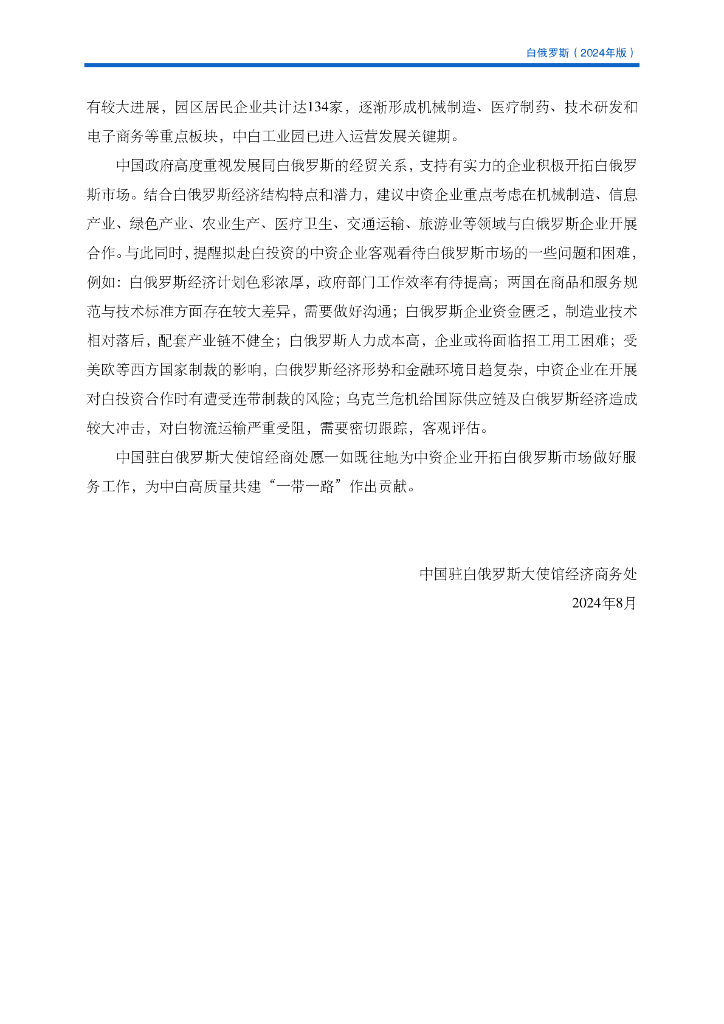 商务部:对外投资合作国别(地区)指南 :白俄罗斯(2024年版).pdf