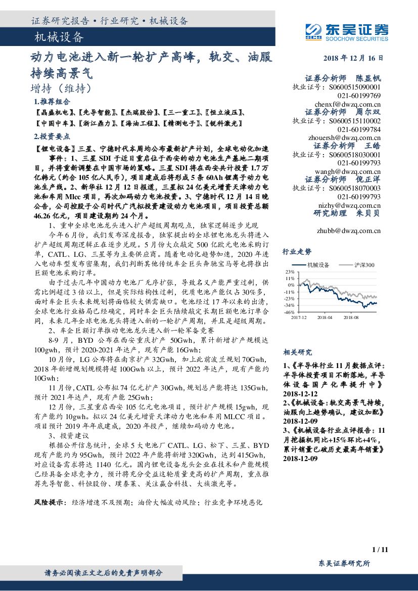 东吴证券:机械设备:动力电池进入新一轮扩产高峰,轨交、油服持续高景气.pdf