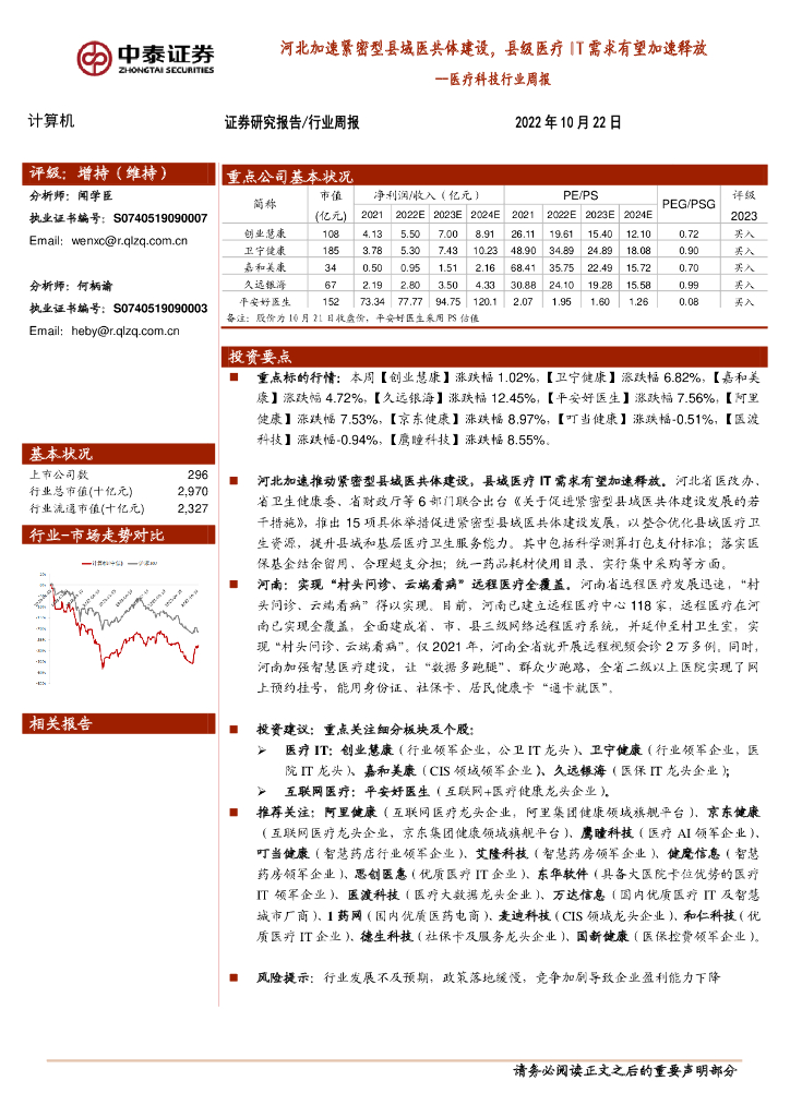 中泰证券:医疗科技行业周报:河北加速紧密型县域医共体建设,县级医疗IT需求有望加速释放.pdf