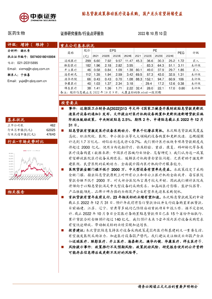 中泰证券:医药生物:贴息贷款政策推动医疗设备采购,国产龙头有望持续受益.pdf