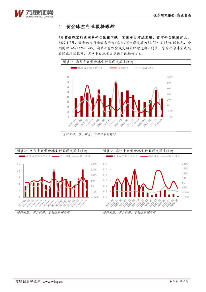 万联证券:商业贸易:7月珠宝电商数据跟踪报告-7月黄金珠宝线上数据表现平淡,头部品牌表现亮眼.pdf