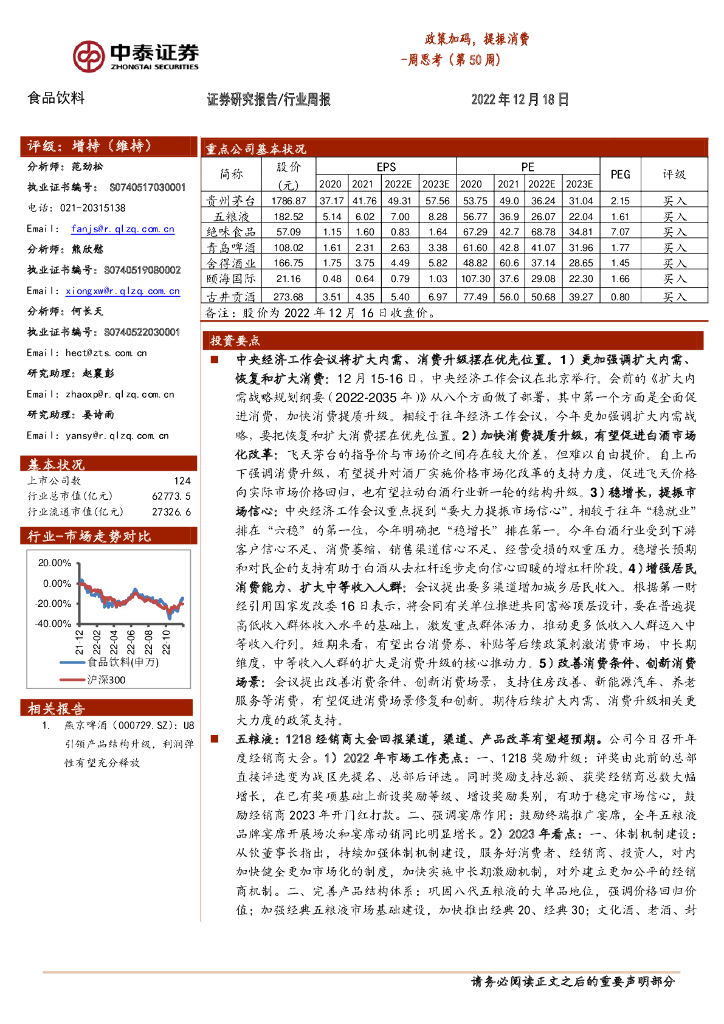 中泰证券:食品饮料周思考(第50周):政策加码,提振消费.pdf
