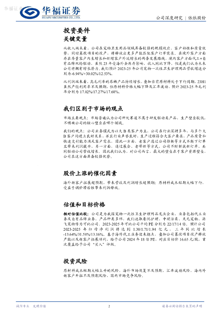 华福证券:依依股份(001206)-宠物护理用品畅销全球,需求恢复助弹性.pdf