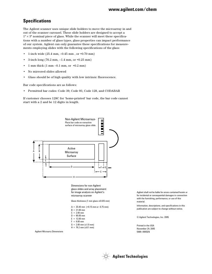 Agilent G2565BA Microarray Scanner Bar Code and Glass Specifications 数据手册.pdf