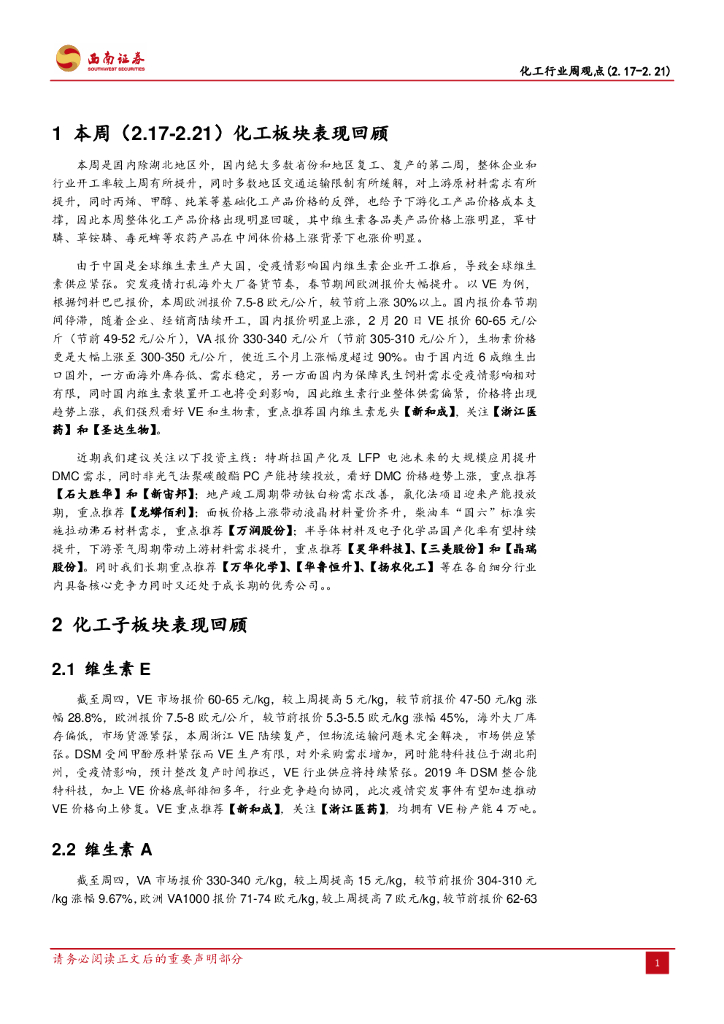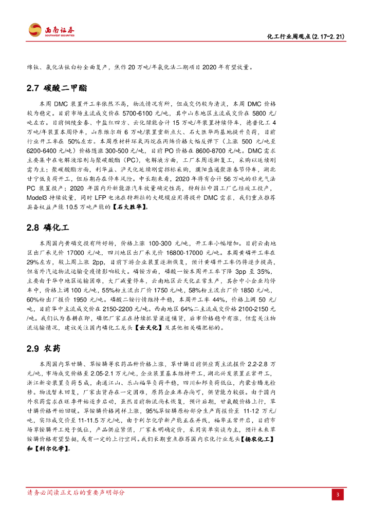 西南证券:化工行业周观点:下游开工率提升,化工产品价格回暖.pdf