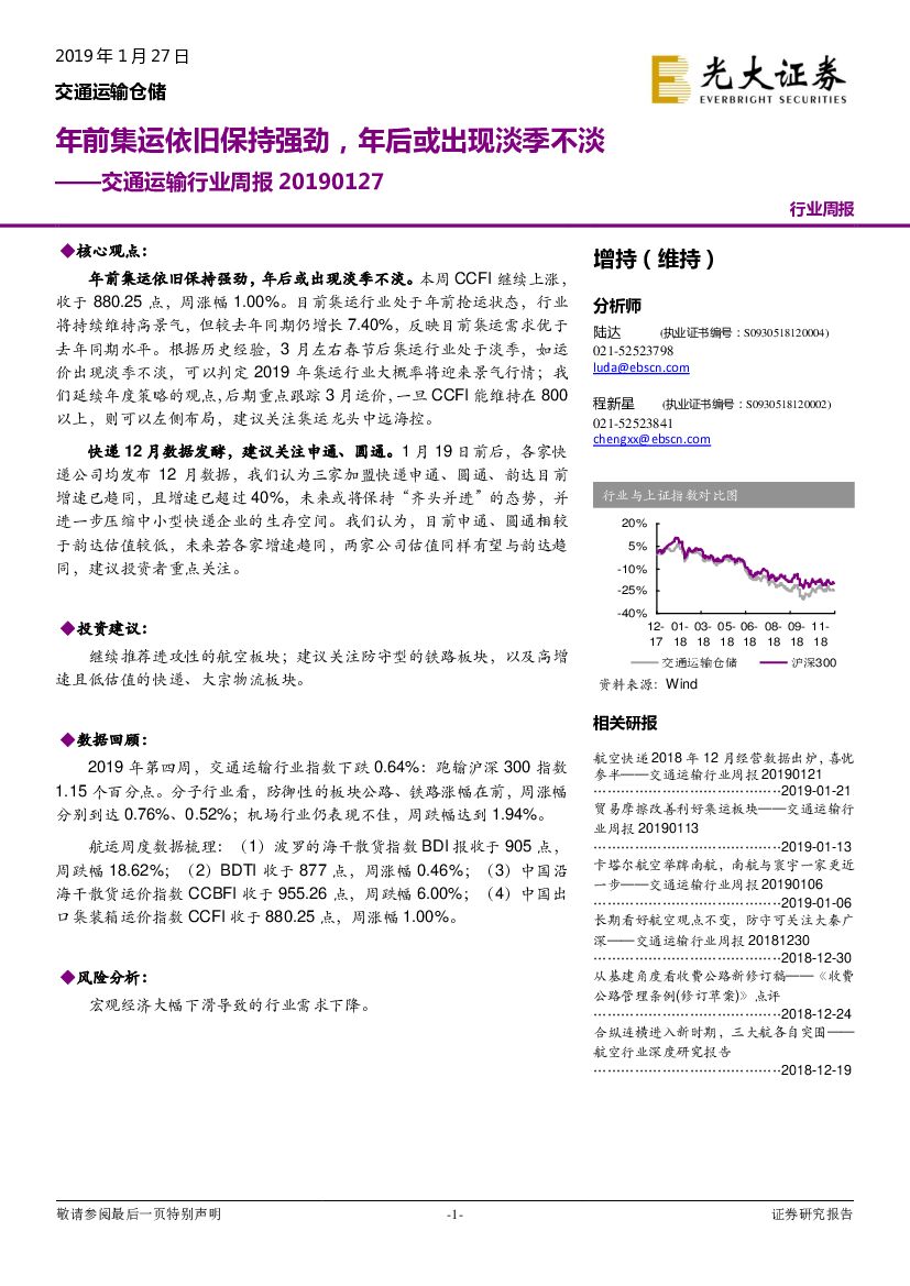 光大证券:交通运输行业周报:年前集运依旧保持强劲,年后或出现淡季不淡.pdf