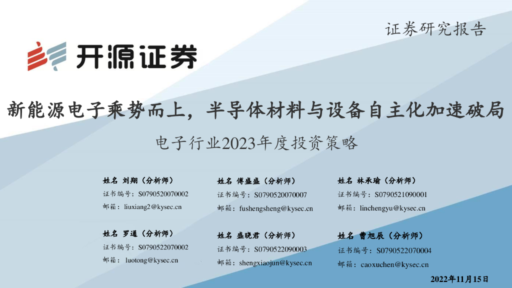 开源证券:电子行业2023年度投资策略:新能源电子乘势而上,半导体材料与设备自主化加速破局.pdf