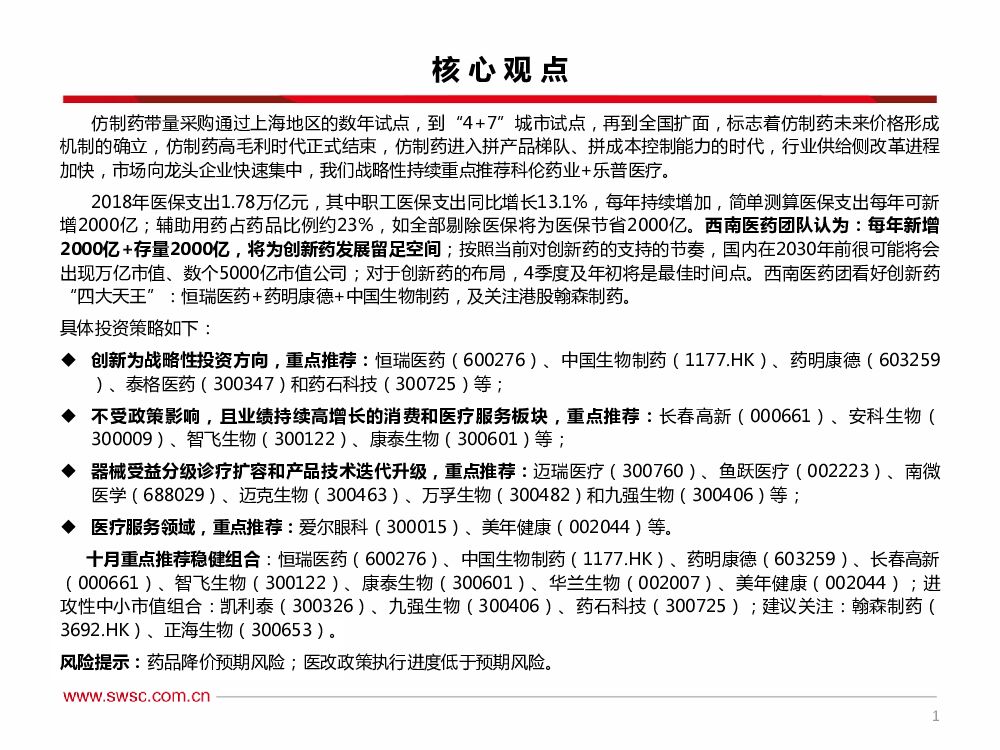 西南证券:2019年10月医药行业投资策略:期待估值切换,首选创新药及其产业链标的.pdf
