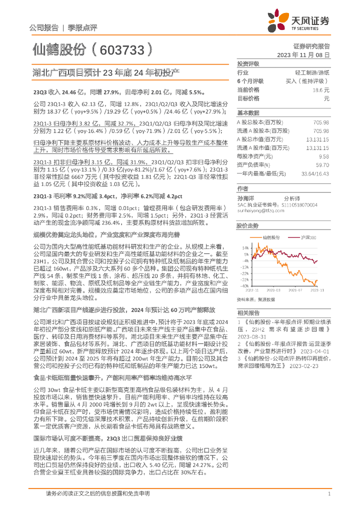 天风证券:仙鹤股份(603733)-湖北广西项目预计23年底24年初投产.pdf
