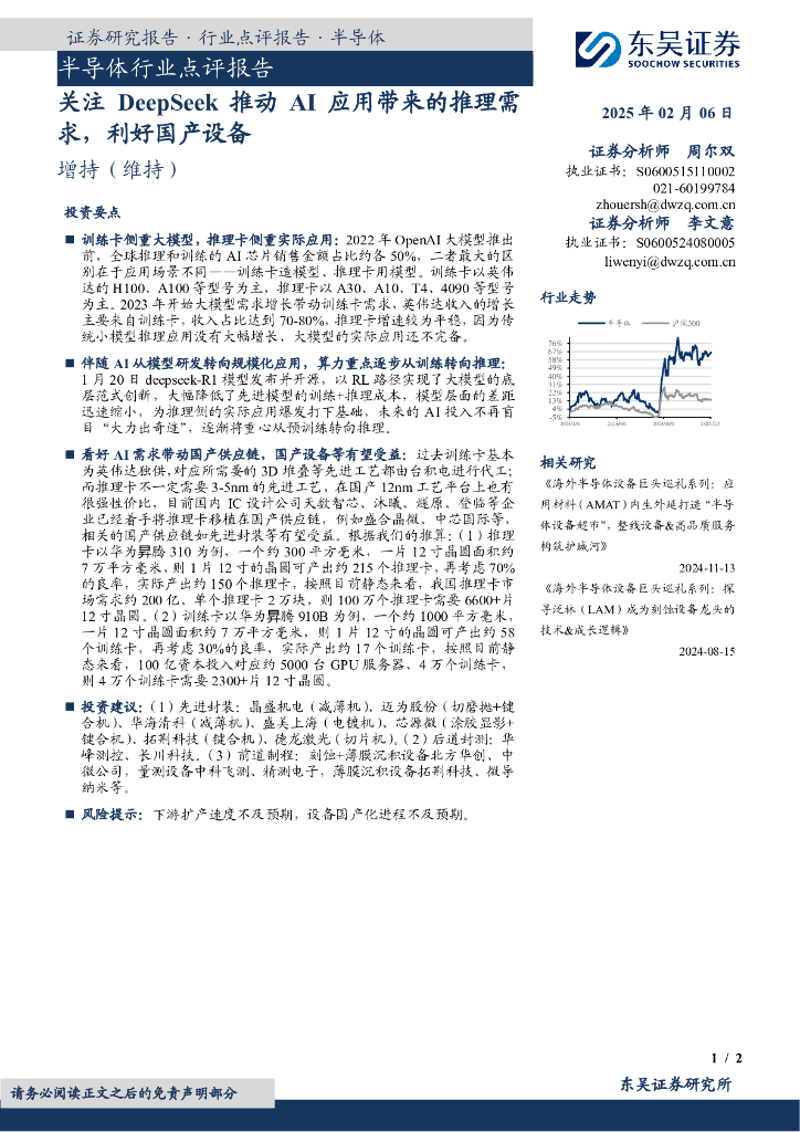 东吴证券:半导体行业点评报告:关注DeepSeek推动AI应用带来的推理需求,利好国产设备.pdf