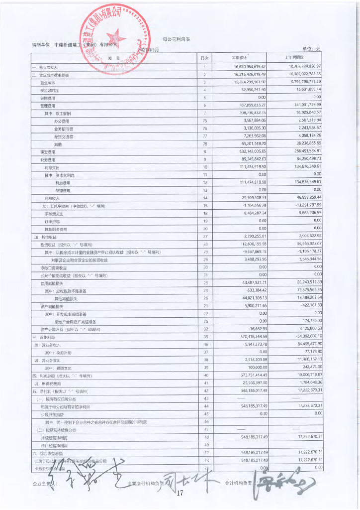 关于中建新疆建工(集团)有限公司2021年三季度母公司财务报表更正说明及更正后文件.pdf