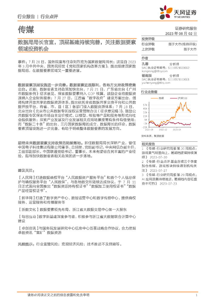 天风证券:传媒:数据局局长官宣,顶层基建持续完善,关注数据要素领域投资机会.pdf