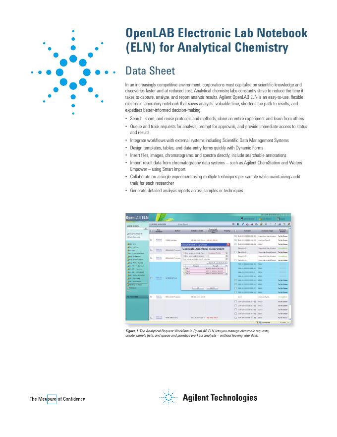 Agilent OpenLAB Electronic Lab Notebook (ELN) for Analytical Chemistry data sheet 数据手册.pdf