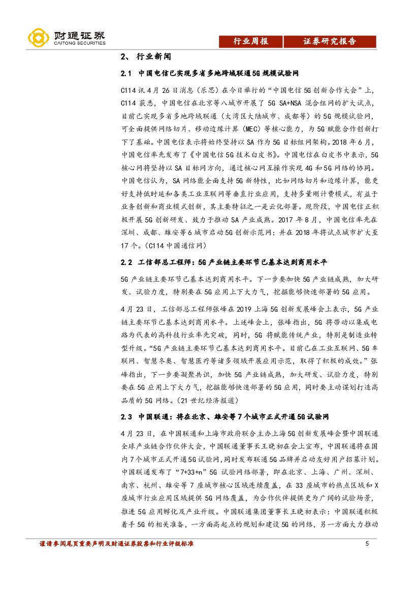 财通证券:通信行业周报:产业链主要环节达到商用水平,5G驱动行业升级.pdf