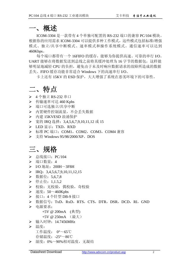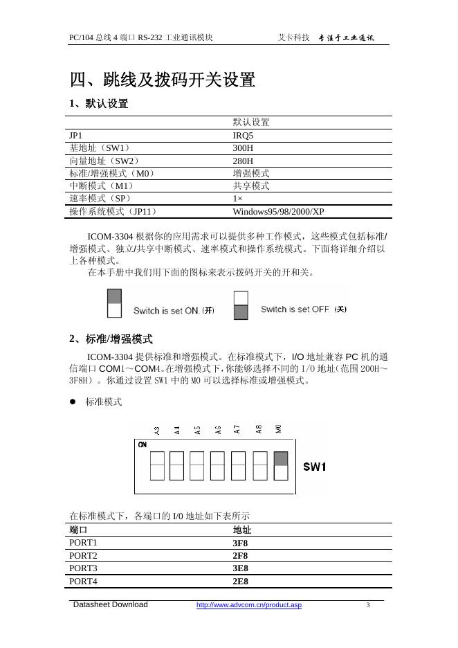 艾卡科技 ICOM-3304 PC/104 总线 4 端口 RS-232 工业通讯模块 用户手册.pdf