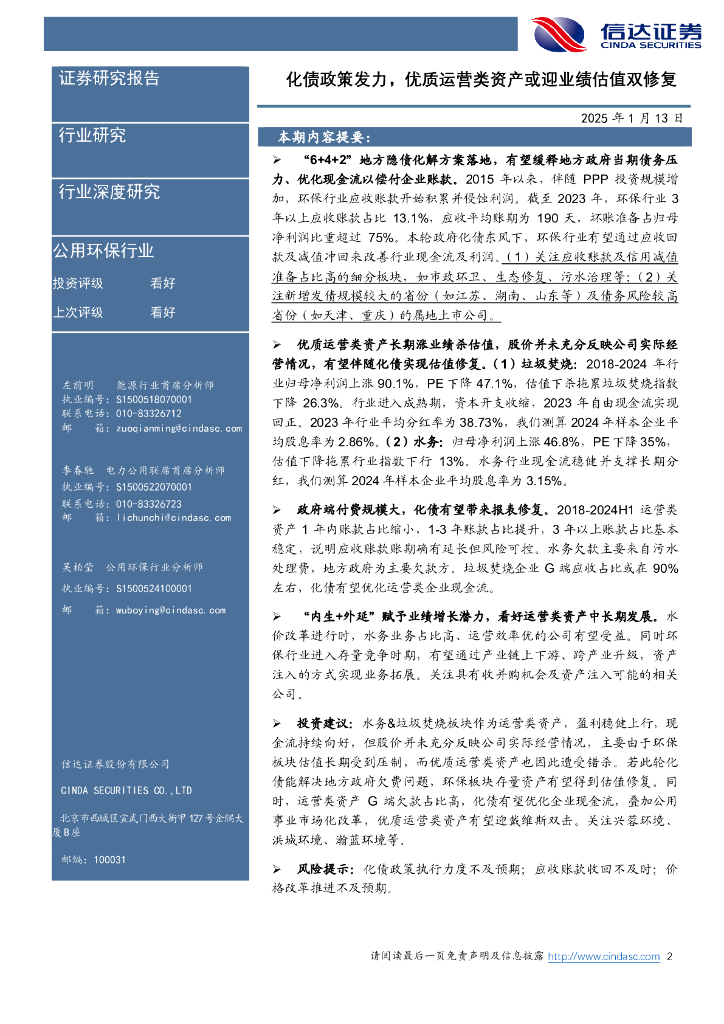 信达证券:公用环保行业:化债政策发力,优质运营类资产或迎业绩估值双修复.pdf