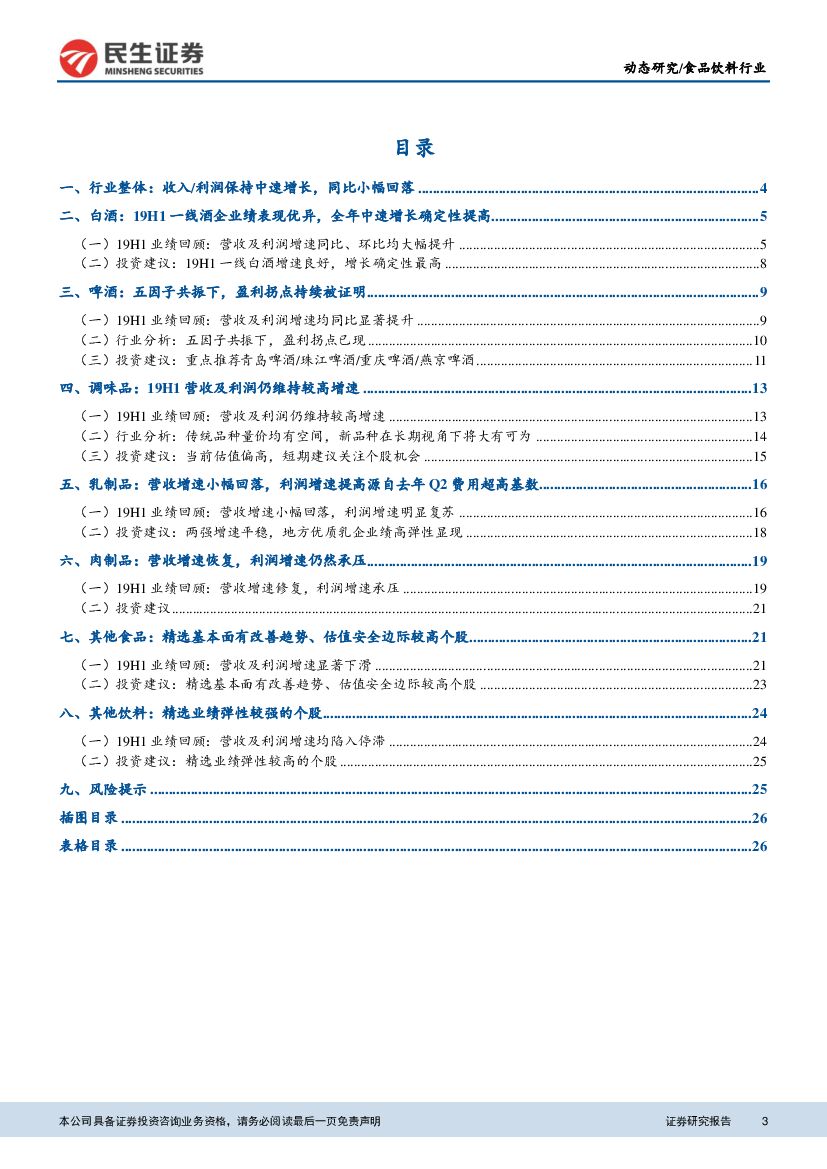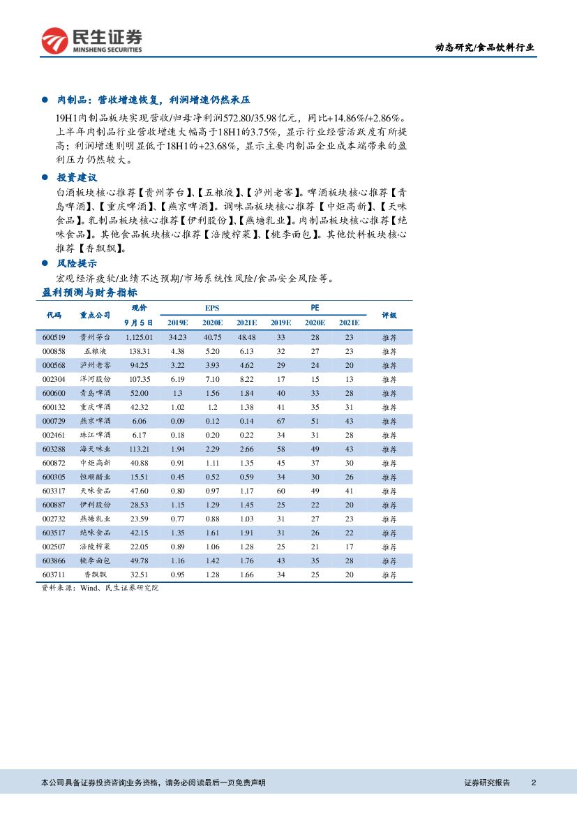 民生证券:食品饮料行业2019半年报总结报告:板块增长总体维持稳定,19H2着眼确定性和环比改善.pdf