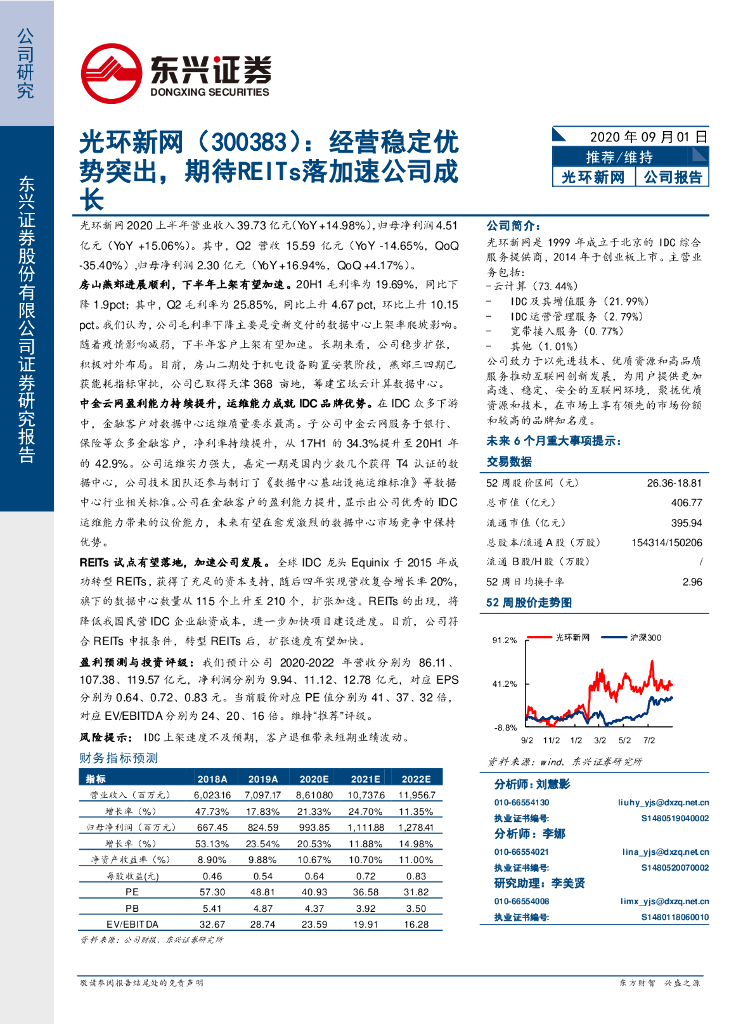 东兴证券:光环新网(300383)-经营稳定优势突出,期待REITs落加速公司成长.pdf