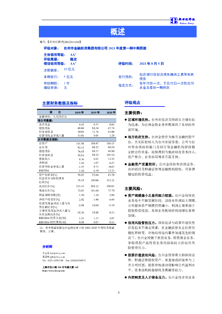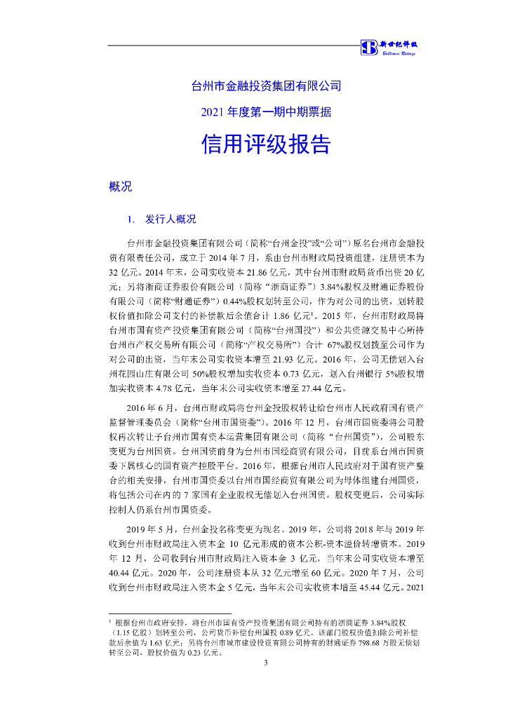 新世纪:台州市金融投资集团有限公司2021年度第一期中期票据信用评级报告.pdf