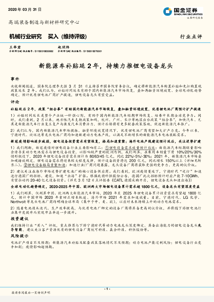 国金证券:机械行业研究:新能源车补贴延2年,持续力推锂电设备龙头.pdf