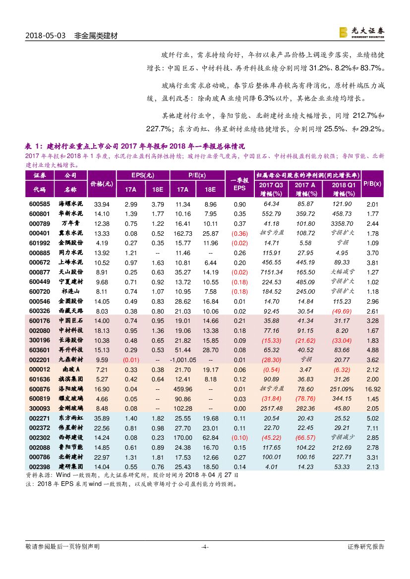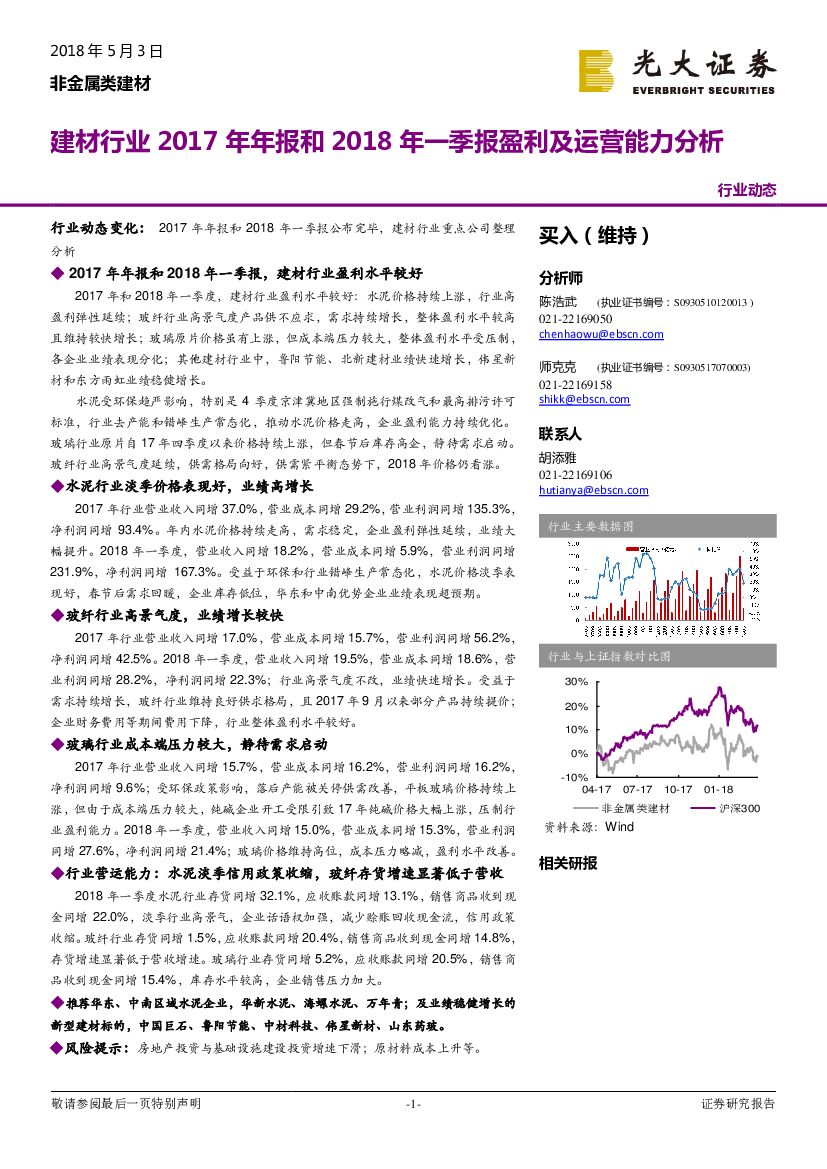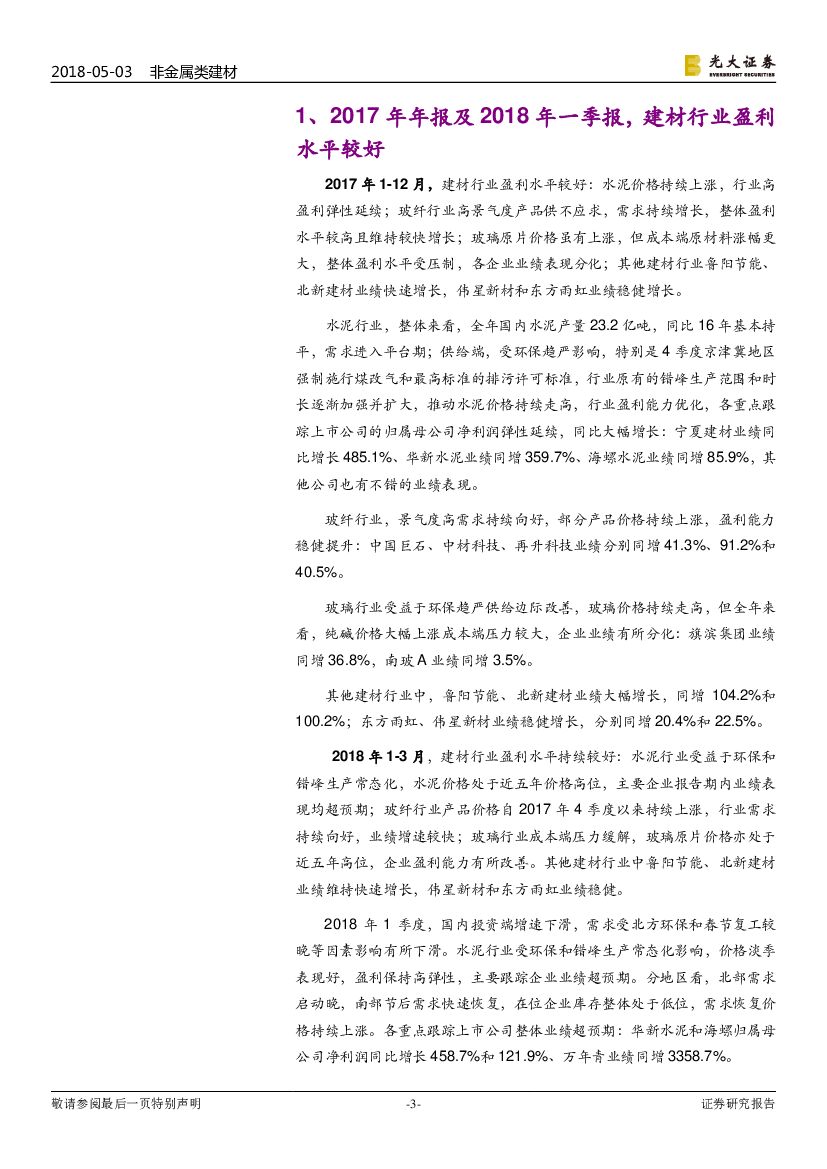 光大证券:建材行业2017年年报和2018年一季报盈利及运营能力分析.pdf