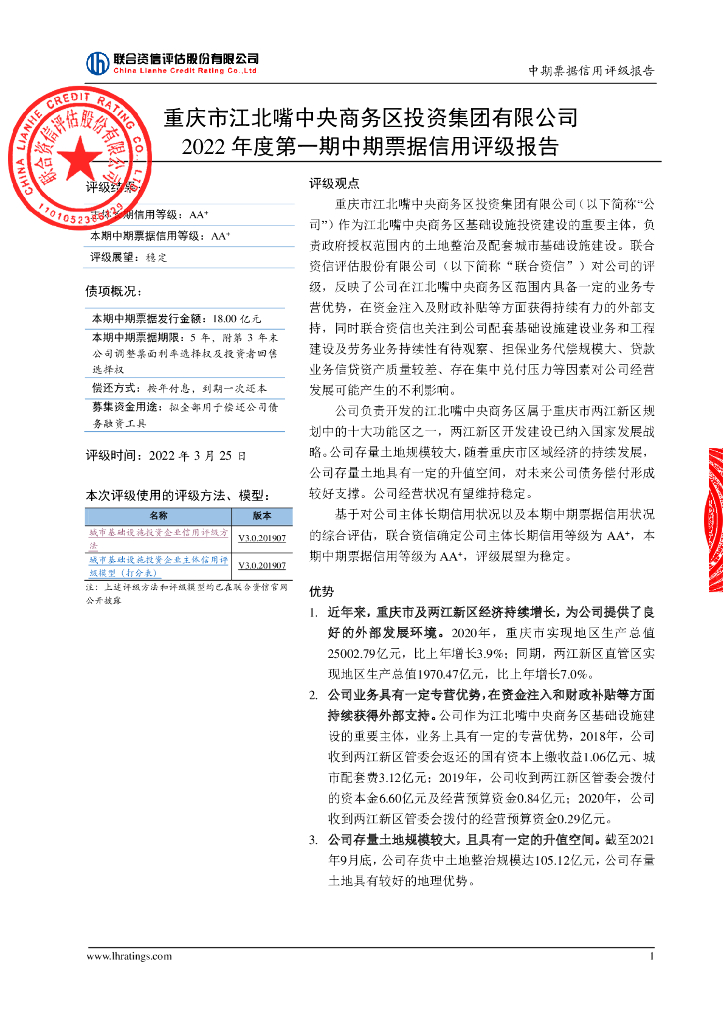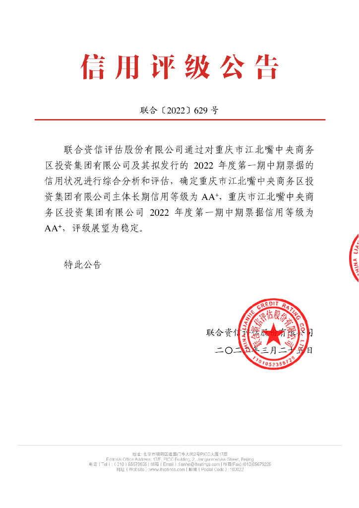 联合资信:重庆市江北嘴中央商务区投资集团有限公司2022年度第一期中期票据信用评级报告.pdf