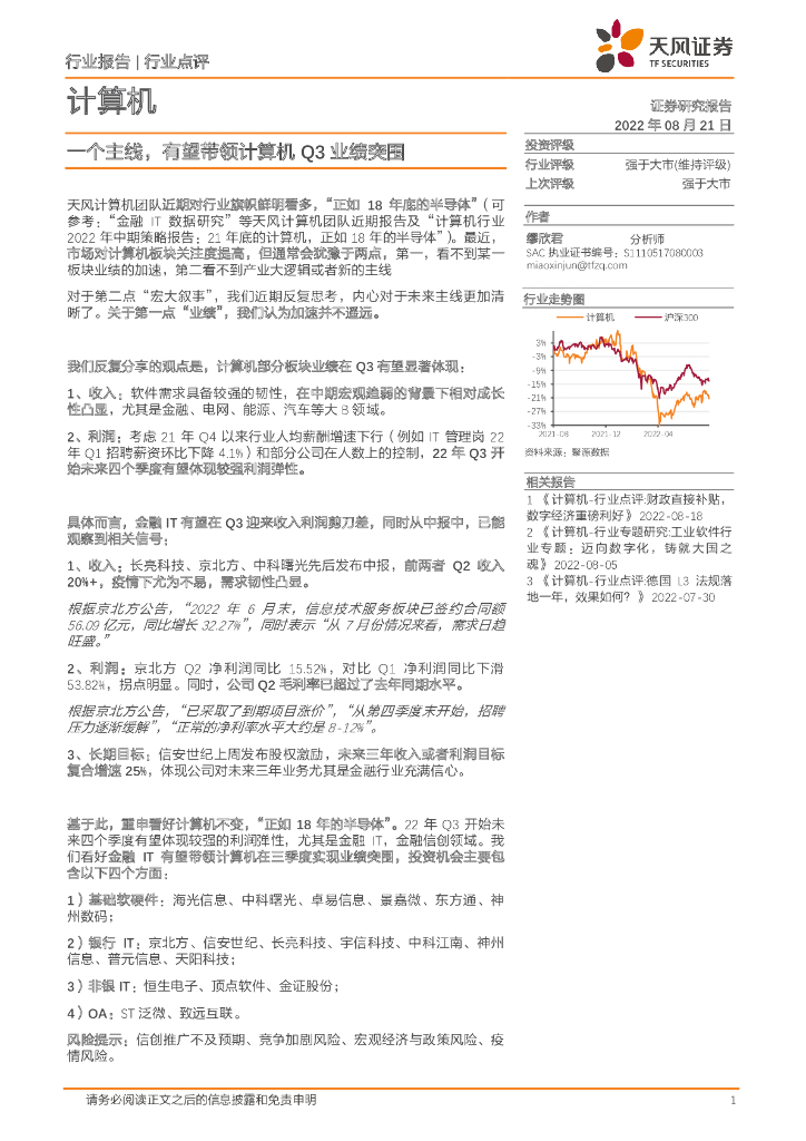 天风证券:计算机行业点评:一个主线,有望带领计算机Q3业绩突围.pdf
