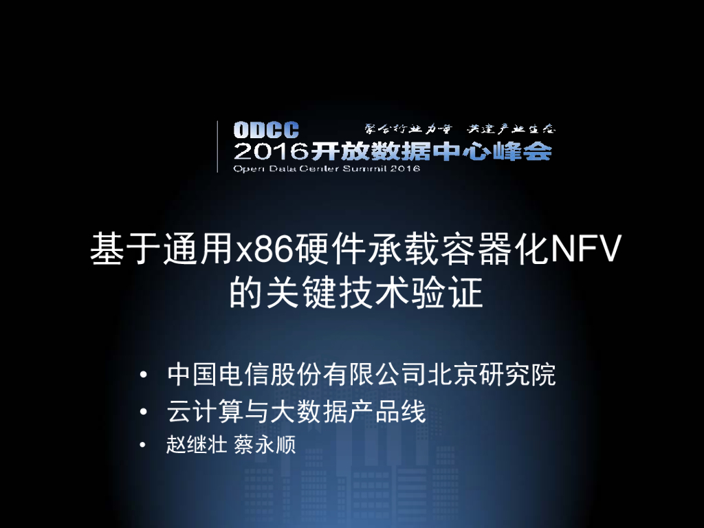 2016开放数据中心峰会:基于通用X86硬件承载容器化NFV的关键技术验证.pdf