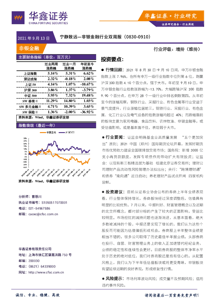 华鑫证券:非银金融行业双周报:宁静致远.pdf
