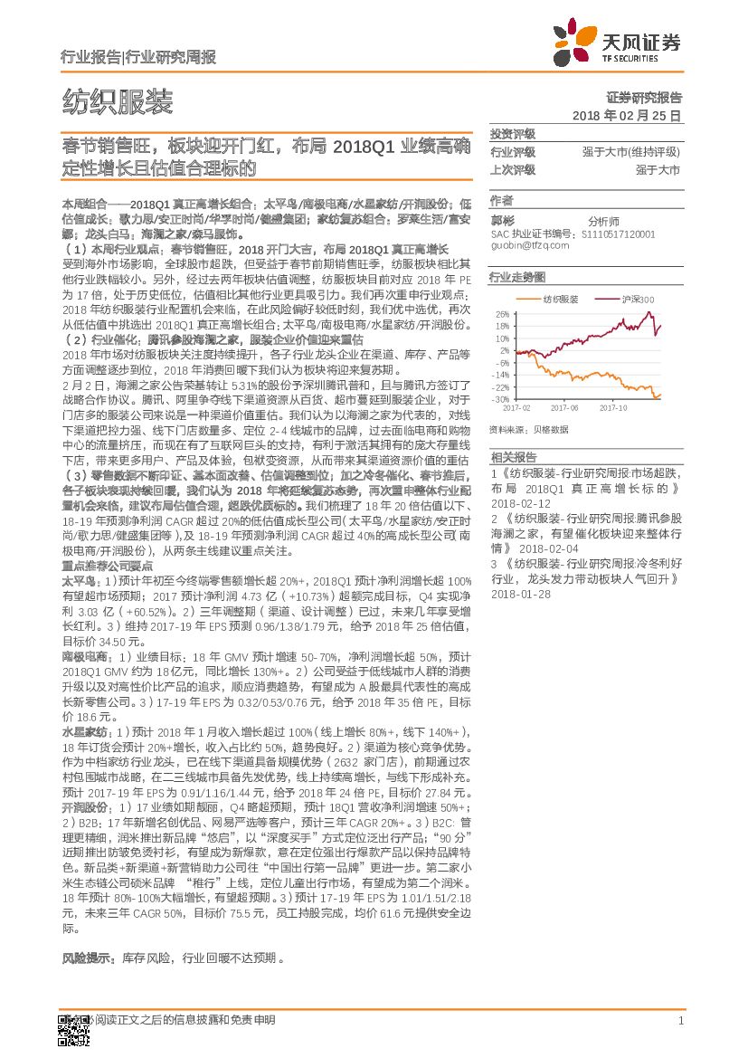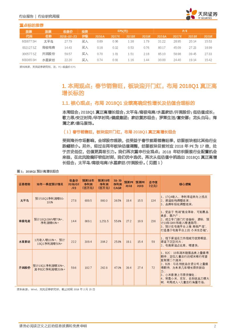 天风证券:纺织服装行业研究周报:春节销售旺,板块迎开门红,布局2018Q1业绩高确定性增长且估值合理标的.pdf