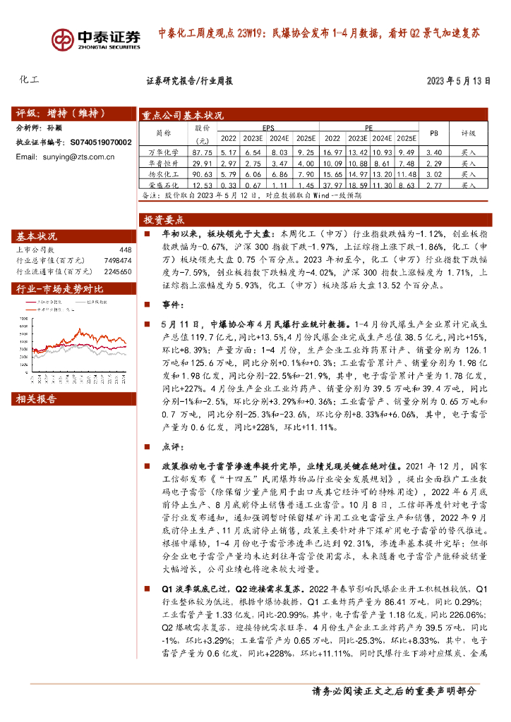 中泰证券:中泰化工周度观点23W19:民爆协会发布1-4月数据,看好Q2景气加速复苏.pdf