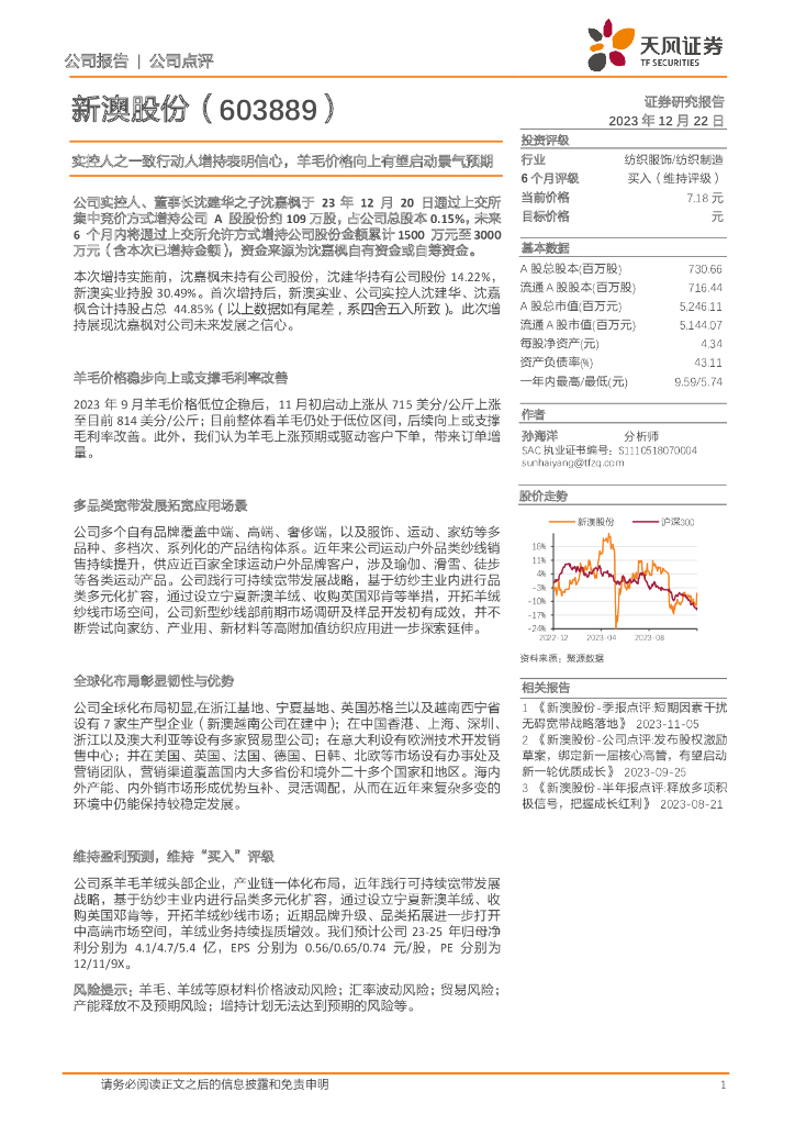 天风证券:新澳股份(603889)-实控人之一致行动人增持表明信心,羊毛价格向上有望启动景气预期.pdf