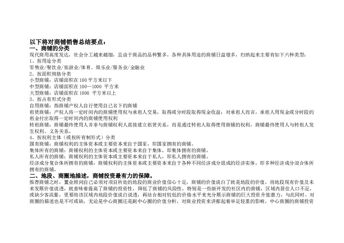 2017金域小团圆商铺销售培训资料商铺分类总结要点.doc