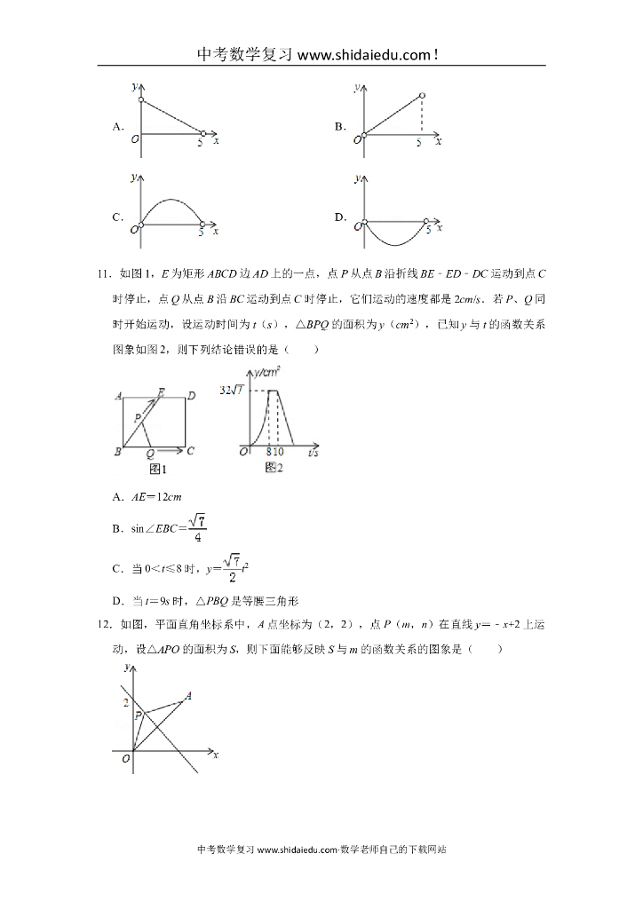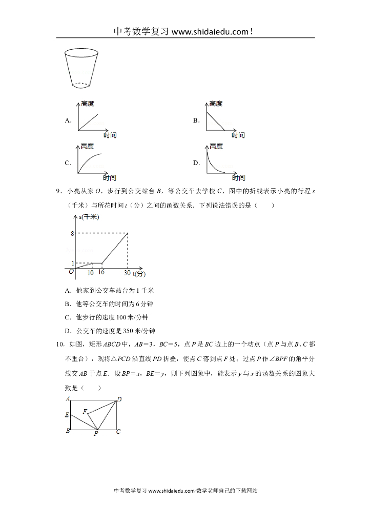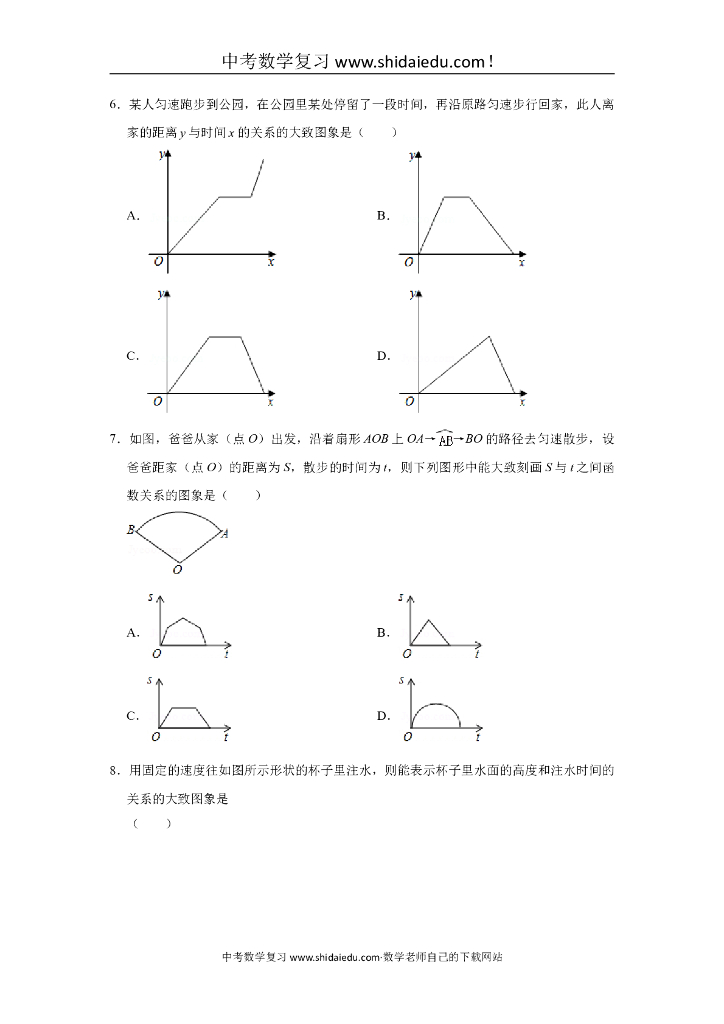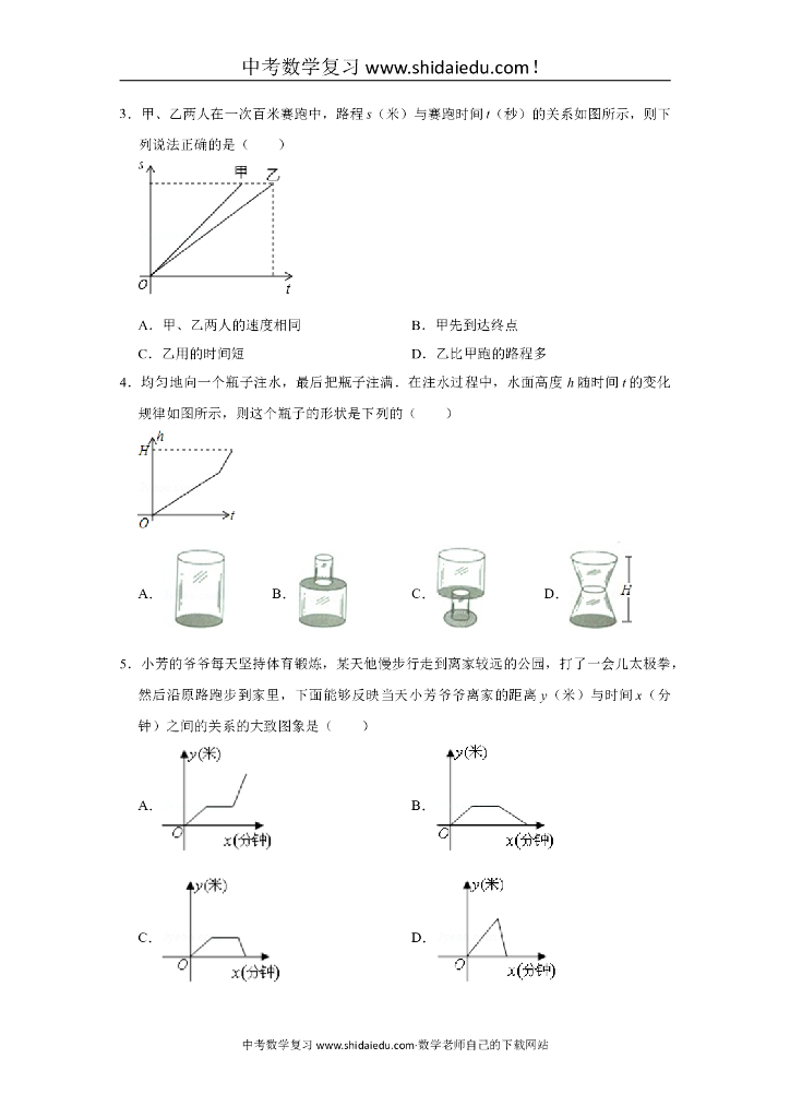 华师大版八年级(下)-中考题同步试卷:18.2-函数的图象(02).doc