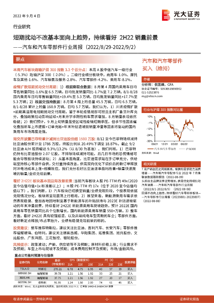 光大证券:汽车和汽车零部件行业周报:短期扰动不改基本面向上趋势,持续看好2H22销量前景.pdf