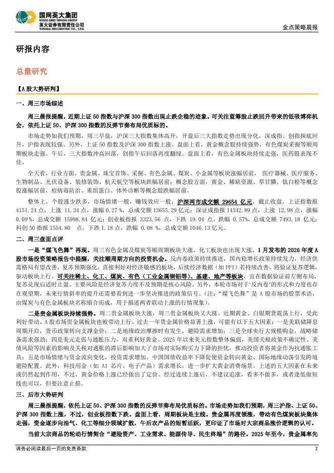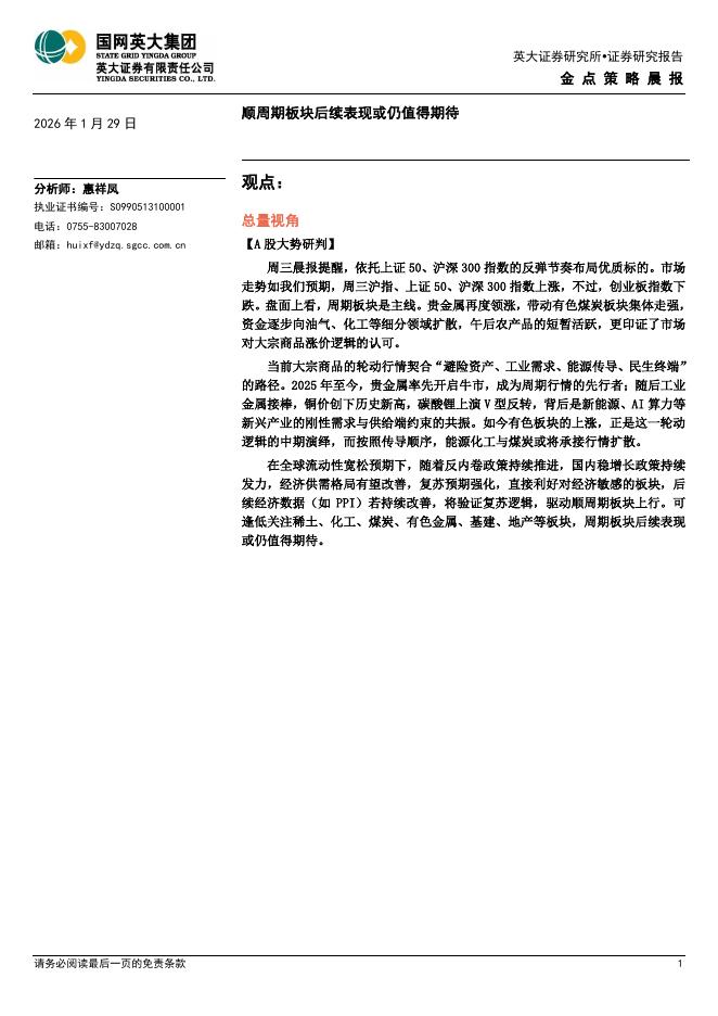 英大证券:金点策略晨报:顺周期板块后续表现或仍值得期待-260129.pdf