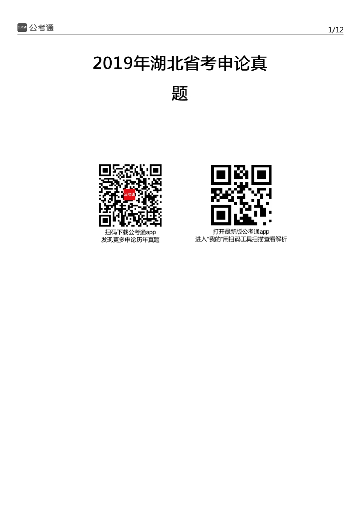 2019年湖北公务员考试申论真题及参考答案.pdf