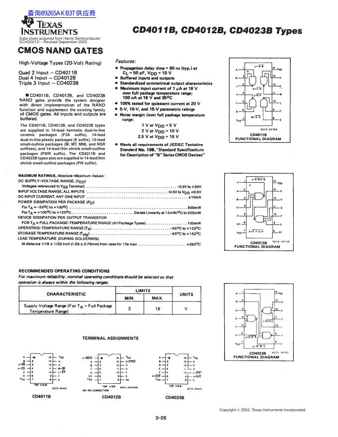TEXAS INSTRUMENTS CD4011B, CD4012B, CD4023B Types 数据手册.pdf