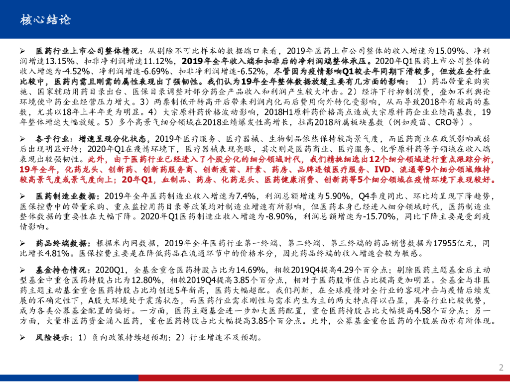 国盛证券:医药行业2019年年报及2020年一季报总结:【医药持续分化后,2019和2020Q1各细分领域如何演绎?】.pdf