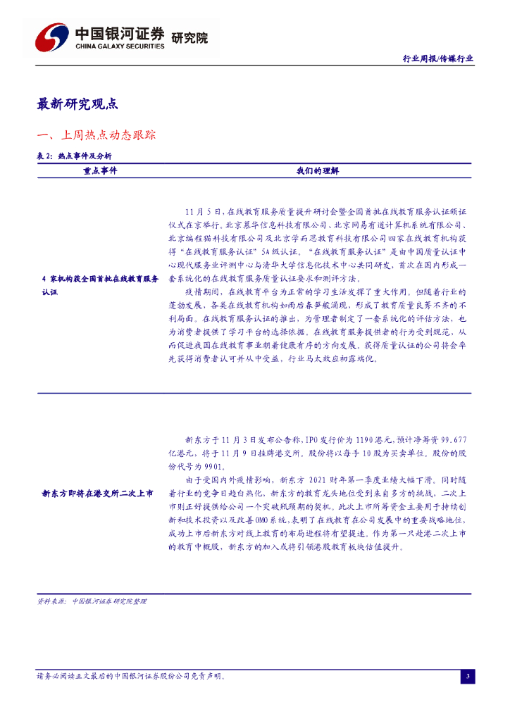中国银河:教育行业周报:4家机构获全国首批在线教育服务认证,新东方即将赴港二次上市.pdf