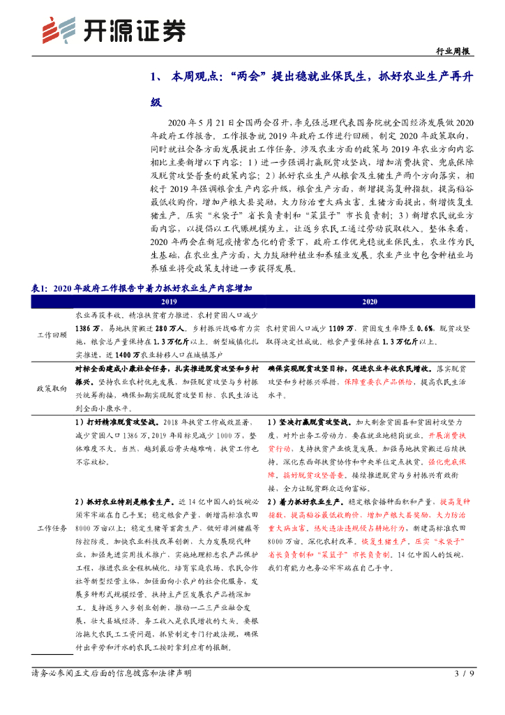 开源证券:农林牧渔行业周报:“两会”提出稳就业保民生,抓好农业生产再升级.pdf