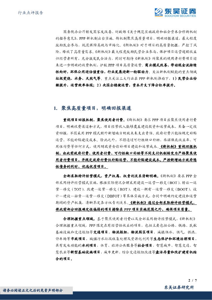 东吴证券:环保行业点评报告:PPP新机制聚焦项目质量,保障高效与市场化,撬动环保公用发展新动能.pdf