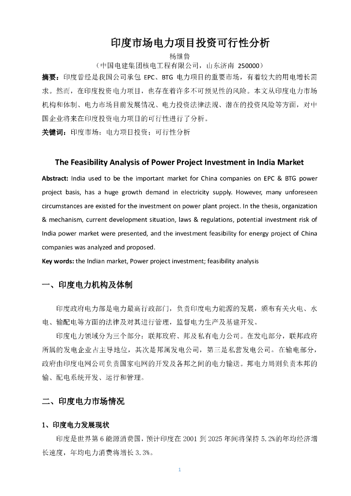 印度市场电力项目投资可行性分析(论文).pdf