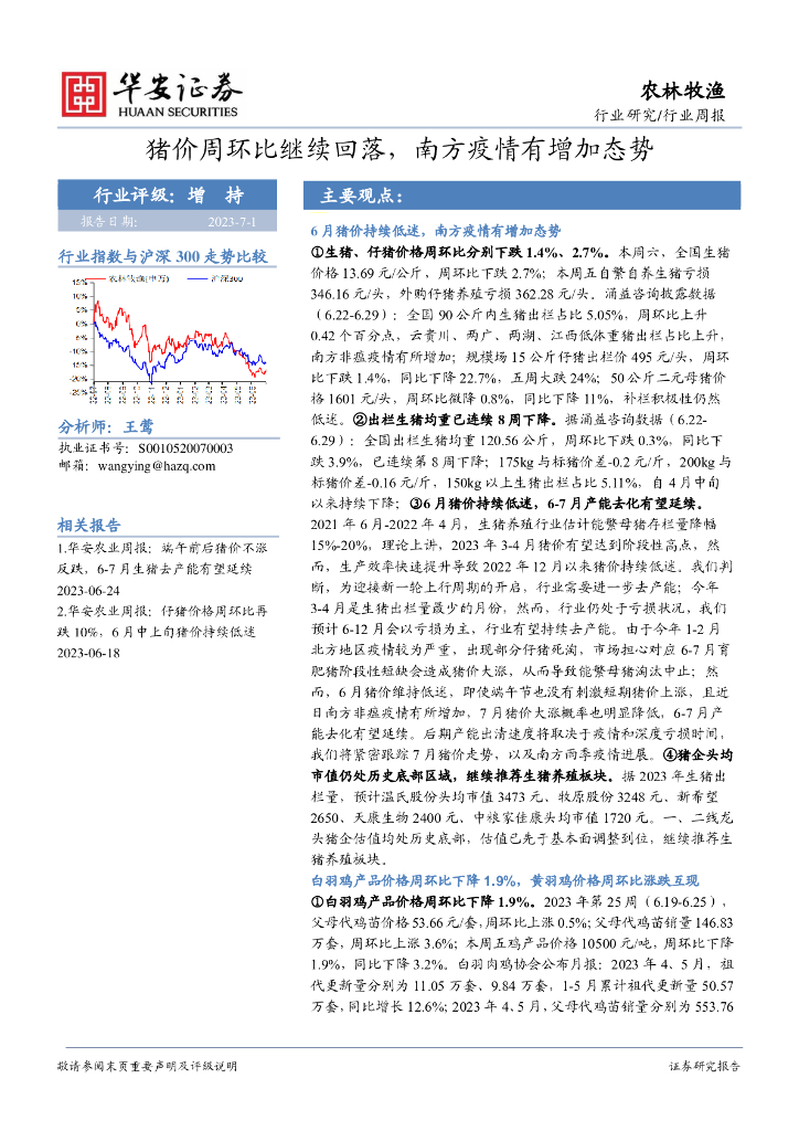 华安证券:农林牧渔行业周报:猪价周环比继续回落,南方疫情有增加态势.pdf