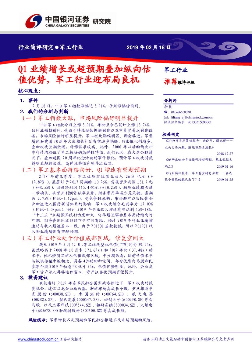 中国银河:军工行业:Q1业绩增长或超预期叠加纵向估值优势,军工行业迎布局良机.pdf