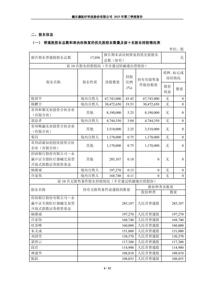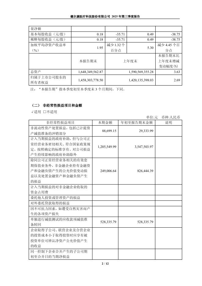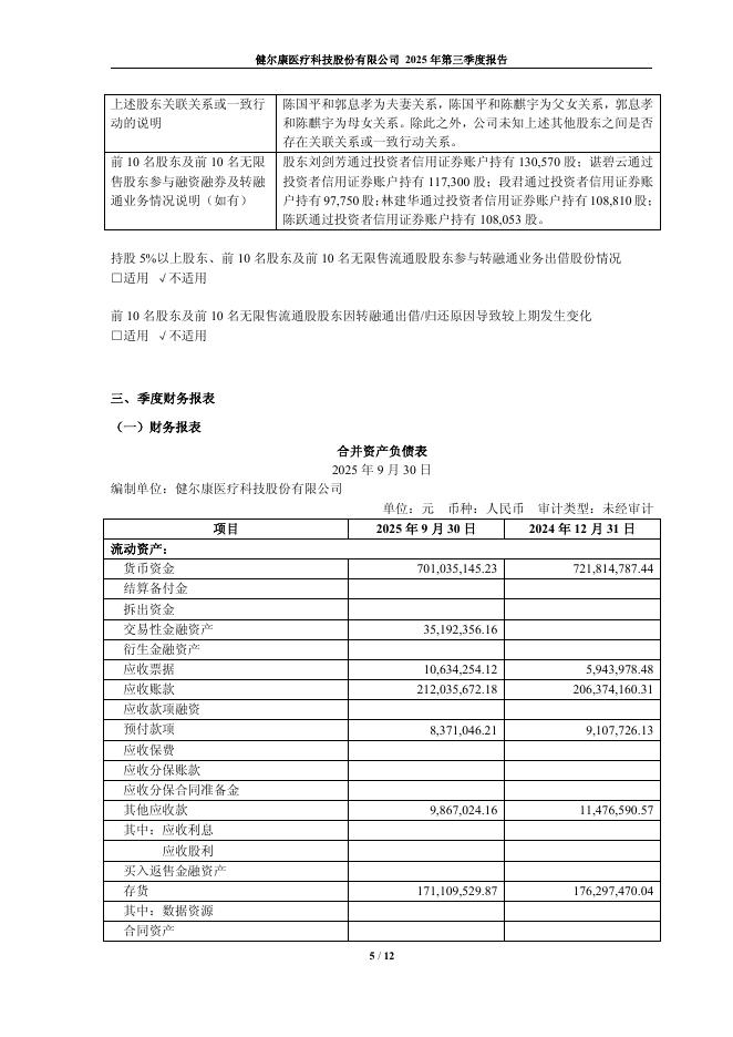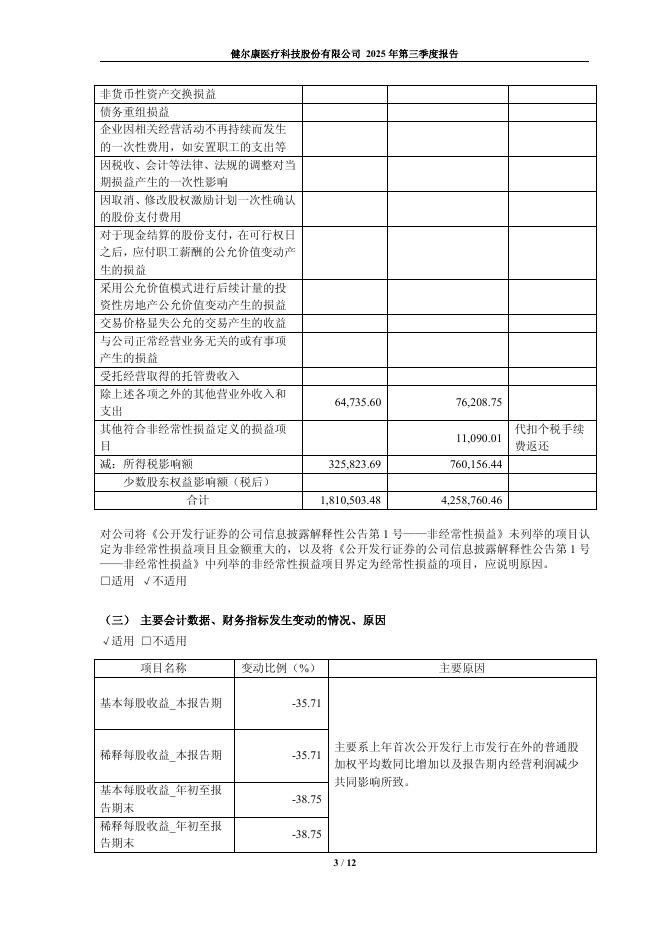 603205-健尔康:健尔康医疗科技股份有限公司2025年第三季度报告.pdf