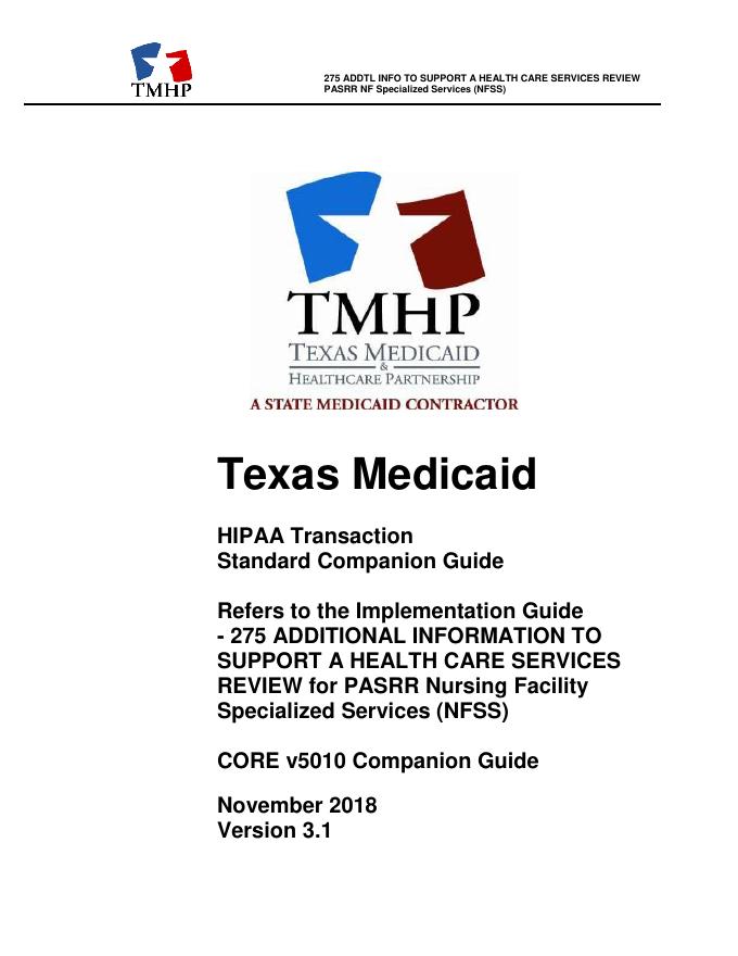 275 健康护理服务审核信息 PASRR 护理设施专门服务 (NFSS) 德克萨斯州医疗补助 HIPAA 事务标准伴侣指南.pdf